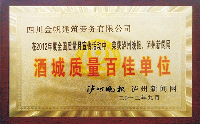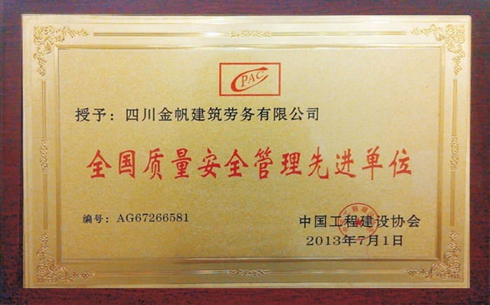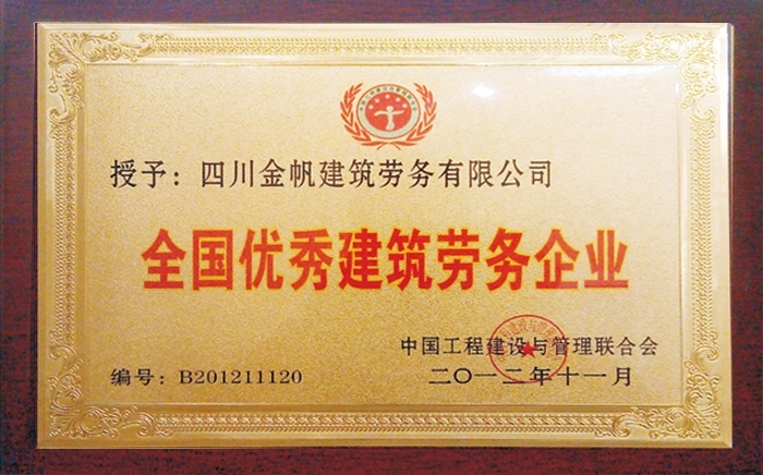 金帆全國優(yōu)秀建筑勞務(wù)企業(yè)